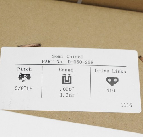 Rola lant Holzfforma HFC38LA Pasul lantului: 3/8 Piccolo Latime canal sina de ghidaj: 1,3 mm (050'') Numar eclise de antrenare: 410 buc/rola Lungime: 7.62 m *Se livreaza impreuna cu 6 cutii de lant si 10 nituri 3/8 Piccolo Produs original Holzfforma Tara de provenienta: China Se potriveste la urmatoarele modele: 017, 018, 021, 023, 025, MS 170, MS 171, MS 180, MS 181, MS 210, MS 211, MS 230, MS 250. Acest lant este compatibil si cu alte drujbe electrice De asemenea acest lant este compatibil si cu unele modele de drujba comercializate sub marcile: Stihl Dolmar Echo McCulloch Homelite Jonsered Shindaiwa Makita Tanaka Efco Oleo Mac