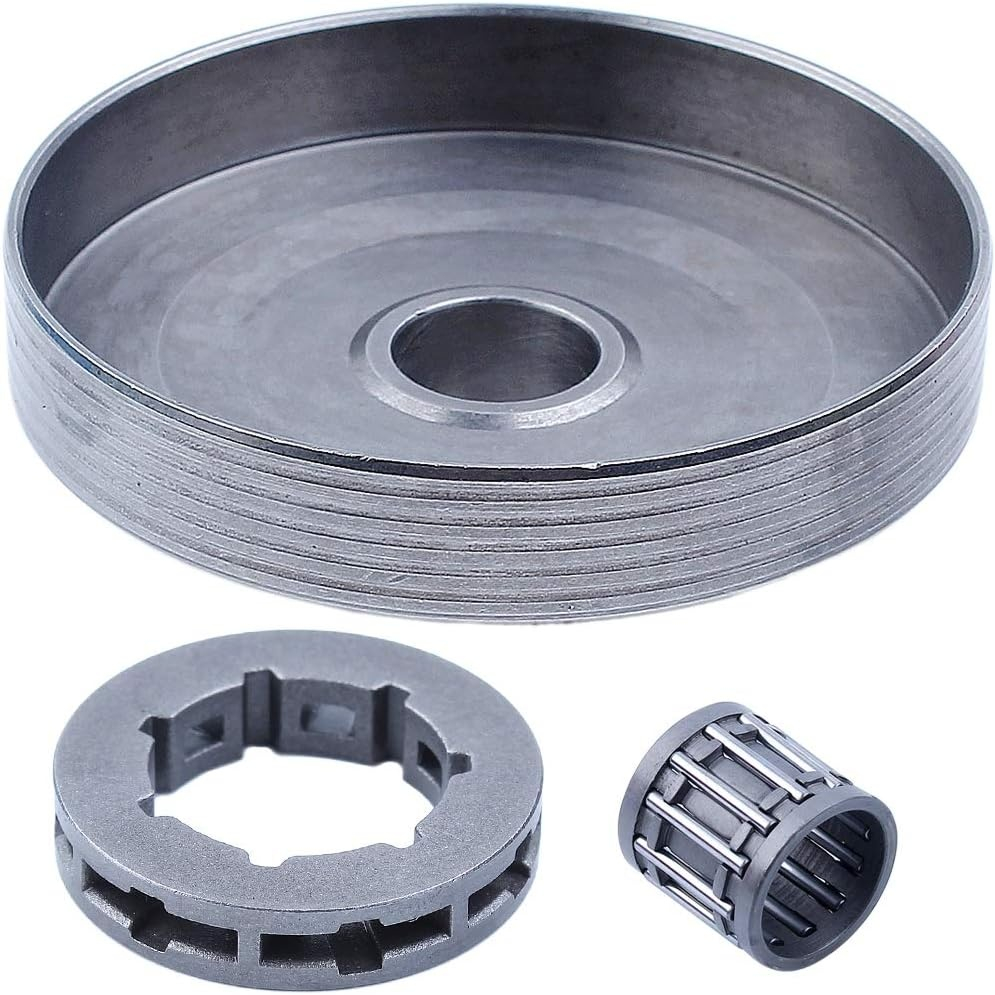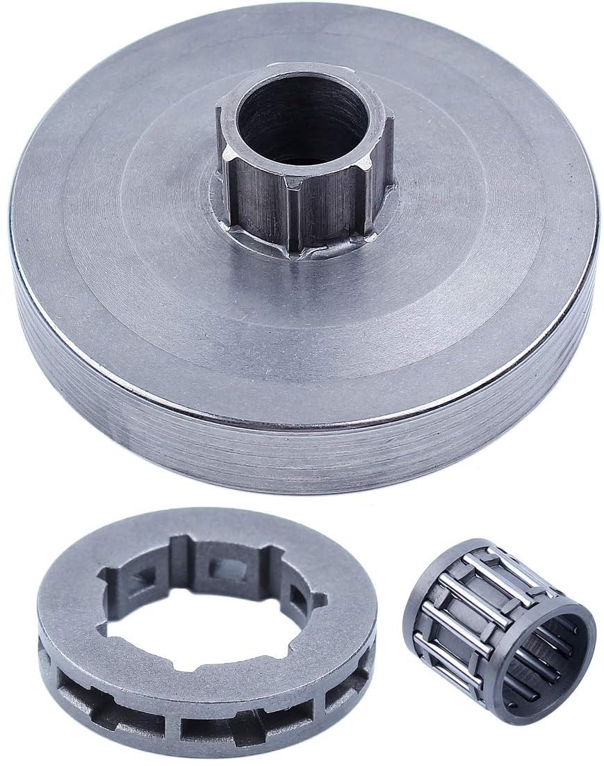 Oala ambreiaj + rotita motrica + colivie Compatibil pentru drujbe chinezesti 6200: Dimensiuni : Diametru interior pinion 15mm Diametru oala interior 77mm Diametru oala exterior 80mm Caracteristici: rotita 3/8-7 Oala vine echipata cu rotita motrica