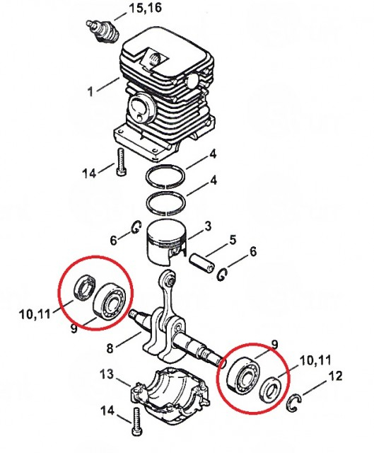 Set simering si rulmenti drujba compatibil Stihl MS 170 - MS 180, 017-018 / set