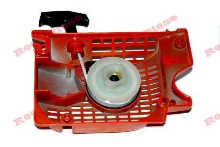 Demaror pornire de metal pentru drujba chinezeasca cu prindere in 4 suruburi. Compatibil cu drujbe chinezesti 4500, 5200 . Demarorul vine complet echipat ! Pentru dimensiuni va rugam sa consultati imaginea de mai jos: Se potriveste pentru diverse modele de drujba chinezeasca printre care: Jenn Feng 4000, 4500, 5200; ALKO Einhell Grizzly Uraganul Regele Mestesug Talon Victus CS45 Faworyt TS45/52/460/520 NAC SPS01-45/SPS02-45/SPS0152/ Topsun T4516/T4518/T4518/T5016/50 Harder PN4500 Garland Micu Fermier Carpati etc.